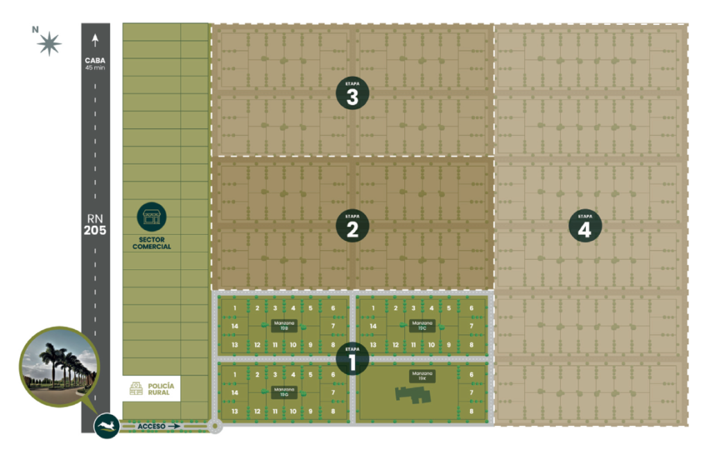 El proyecto está compuesto por 307 lotes residenciales de 600 m².